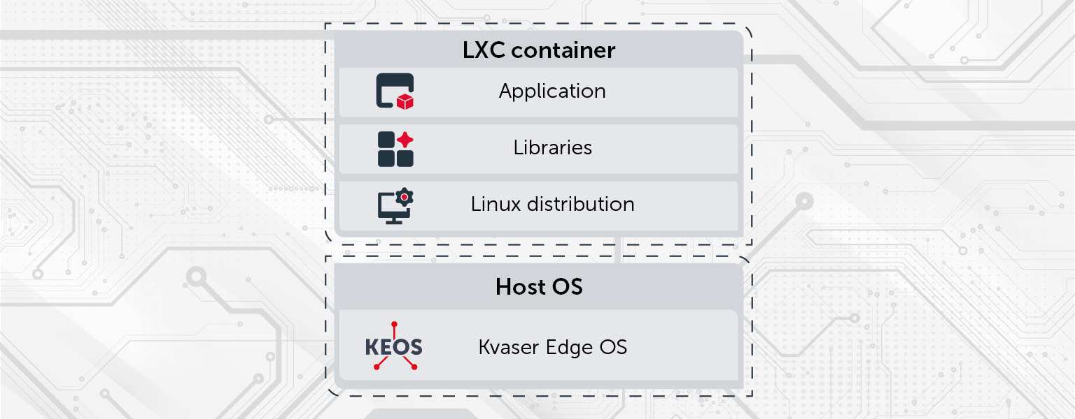 在Kvaser Edge上,KEOS(Kvaser Edge操作系统)为运行LXC容器奠定了基础。KEOS允许应用程序在低开销的隔离环境中运行,这对于需要高可靠性和更新可控性的嵌入式及工业应用场景来说是理想之选。使用SocketCAN或Kvaser CANlib(Kvaser Edge将于2026 年5月支持CANlib)构建的应用程序均可在容器内运行,现有CAN总线相关软件资源也可轻松复用。